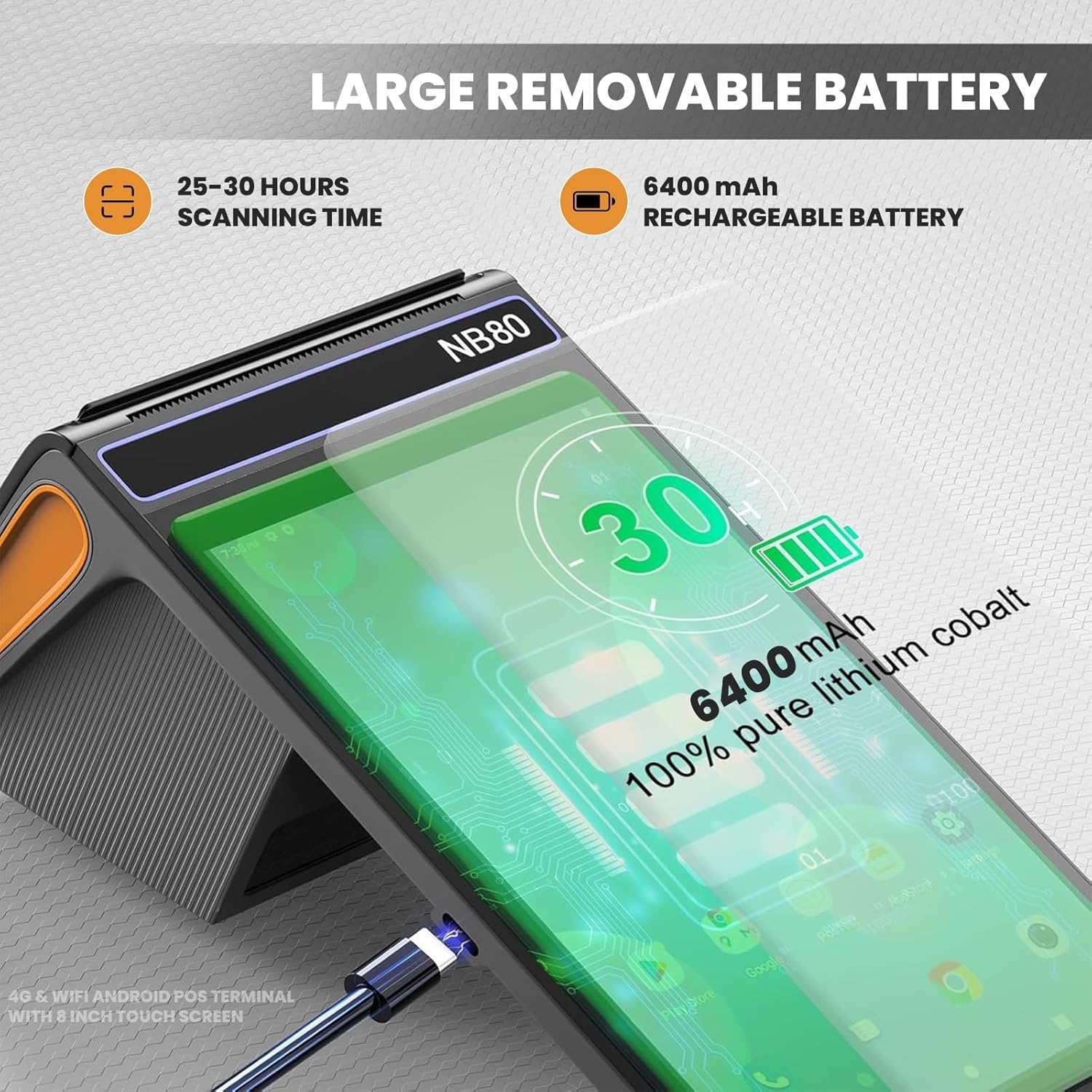 ใ๐๐๐๐๐ฆ๐๐ก ๐๐๐๐๐ก๐ซ๐ ๐๐๐๐ฅ๐ ๐๐ข-๐๐๐ญ๐ญ๐๐ซ๐ฒใWireless pos terminal comes with 6400mAh rechargeable li-battery which supports it continue working over 30 hours,so users no worries about low power when working busy.There is a 5V--2000mA charge adaptor in the package,which can charge the pos terminal to full power within 6 hours.