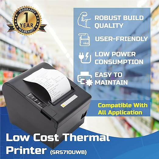 • It has 150kms Life and 250mm/s Speed. Resolution 203DPI , Compatible with ESC POS Commands,