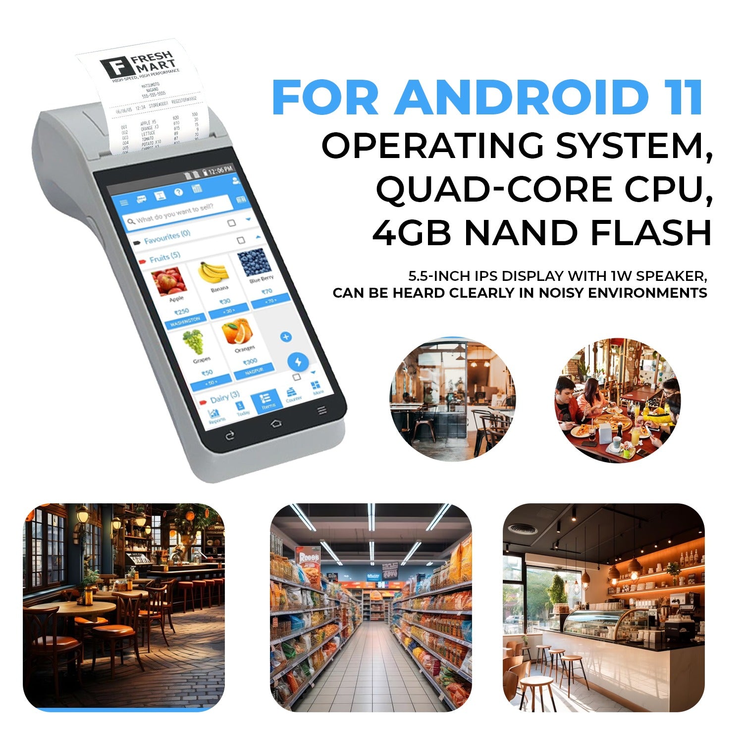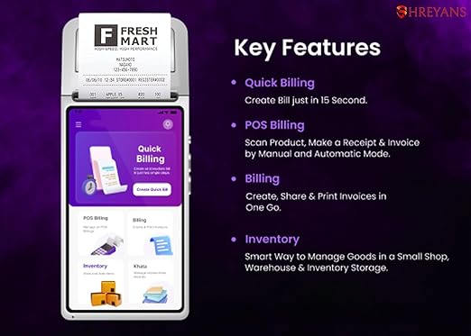 POS Billing Machine Terminal with Free Billing & Inventory Software | Can also be used as Quick Billing in Restaurants Retail Shops Van Distribution Parking Collection Outdoor Billing Cafes Hotel Gift Shops Warehouse